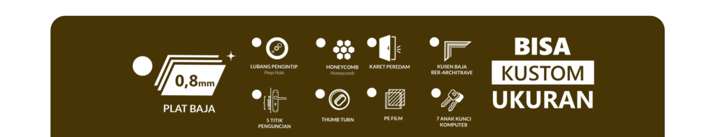 Desainnya yang modern dengan sentuhan finishing elegan menjadikan Pintu Baja Bronka tidak hanya kokoh dan fungsional, tetapi juga mampu menambah nilai estetika pada setiap bangunan.