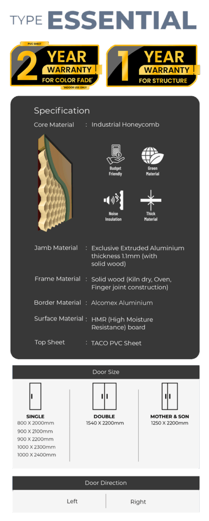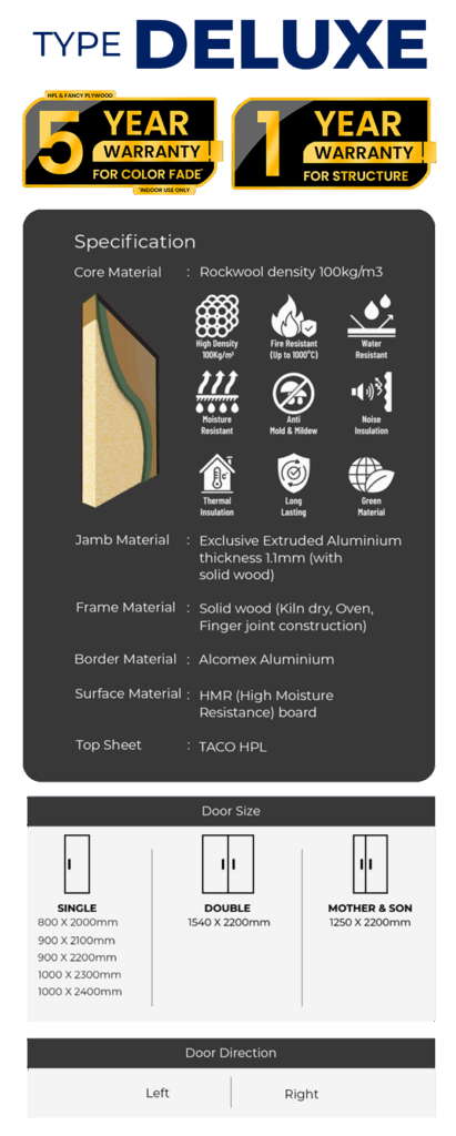Pintu Engineering Wood LUMA adalah pilihan tepat bagi Anda yang mencari pintu berkualitas dengan desain elegan, kuat, dan tahan lama. Dibuat dengan teknologi kayu rekayasa modern, pintu LUMA lebih stabil, tidak mudah melengkung, serta tahan terhadap perubahan suhu dan kelembaban. Finishing premium menjadikannya cocok untuk hunian maupun ruang komersial yang mengutamakan estetika dan daya tahan.